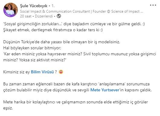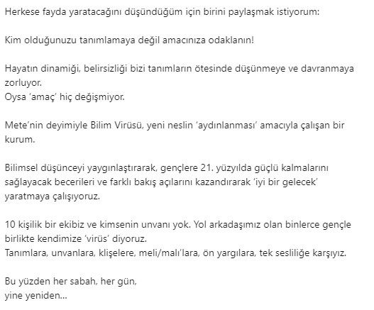 Pazartesi günü ikincisine örnek bir ekiple beraberdim, Bilim Virüsü ekibiyle… Yani ortamda bol miktarda #curiosium ve #positivium vardı.