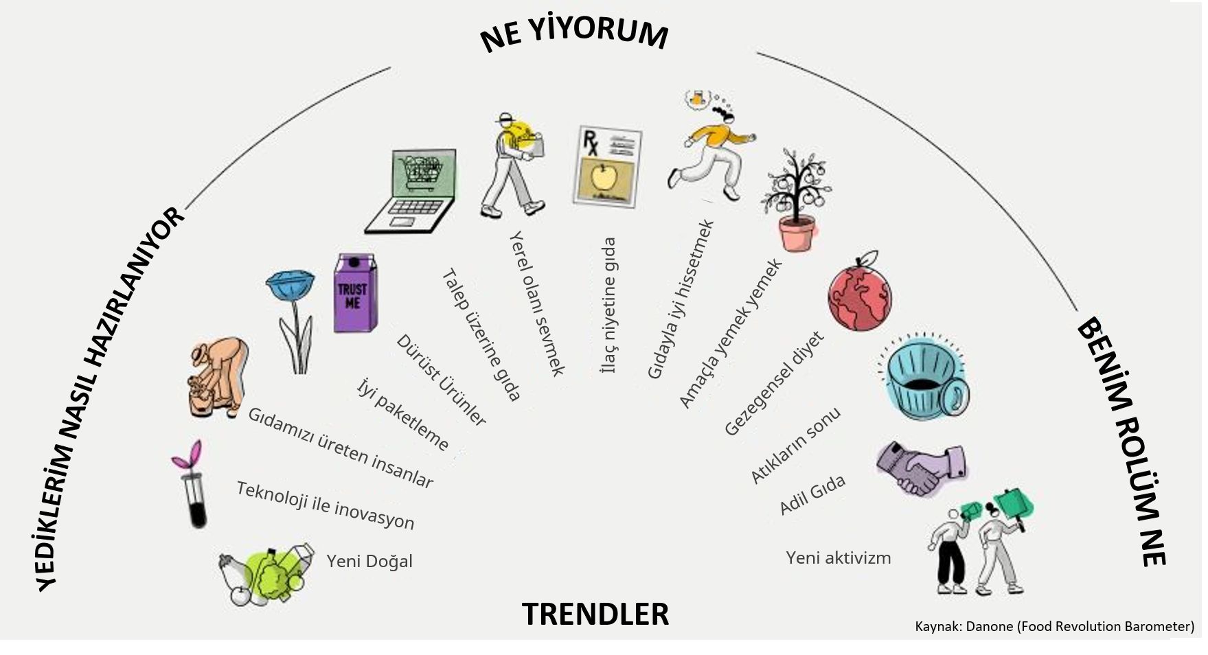 Not: Bu paylaşımı bir yıl kadar önce yapmıştım, bir takipçimin beğenmesiyle tekrar önüme geldi. Görseli Türkçeleştirdim. Rapora da tekrar baktım, gerçekten çok kafa açıcı bir rapor, herhangi bir trend raporundan çok daha fazlası bence. Daha çok kişiye ulaşmasına katkım olursa memnun olurum, böyle kapsamlı ve masraflı bir çalışmayı paylaşmayı seçen Danone’a da tekrar teşekkürler.