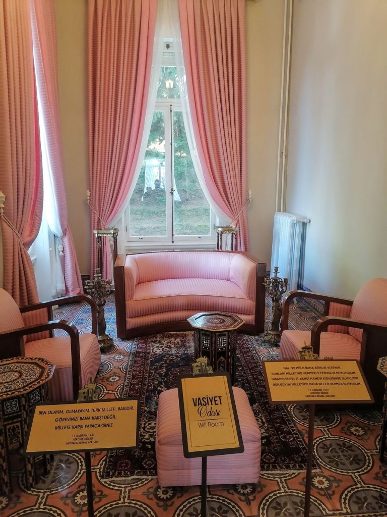 Trabzon’a geri indiğimizde ise Atatürk Köşkü’nü ziyaret ettik. Atatürk Trabzon’a üç kez gelmiş, ilkinde 1924’te bu köşkte ağırlanmış ama kalmamış. Daha sonra 1930 ve 1937’de burada konaklamış. Hatta son gelişinde gördüğü ilgiden çok duygulanmış. “Mal ve mülk bana ağırlık veriyor. Bunları milletime bağışlamakla ferahlık duyacağım. İnsanın serveti kendi manevi kişiliğinde olmalıdır. Ben büyük milletime daha çok şeyler vermek istiyorum.” diyerek vasiyetini bu köşkte yazdırdığı ve tüm varlığını millete bağışladığı söyleniyor. Bu olayın üstüne köşkü de kendisine bağışlamışlar ama o vasiyetin içinde olmadığı için kardeşi Makbule Hanım’a miras kalıyor. Sonra devlet 1943’te Makbule Hanım’dan satın alarak müzeye çeviriyor. Gerçekten çok zarif ve zamanın ruhunu temsil eden bir ev.