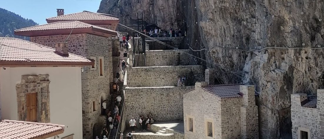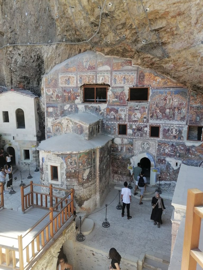 Doğu Karadeniz’deki son günümüzde Sümela Manastrı’na çıktık. Buradaki en eski yapı olan kilisenin MS 4.yüzyılda yapıldığı düşünülüyor. O tarihte hristiyanlar Kapadokya’da olduğu gibi gizleniyorlar. Efsaneye göre iki keşiş aynı rüyayı görüyorlar ve İsa’nın yakınlarından Aziz Luka onları yaptığı ikonu bulmaları için Sou Mela (kara dağ’a) davet ediyor. Onlar da burayı bulup bir kilise inşa ediyorlar.