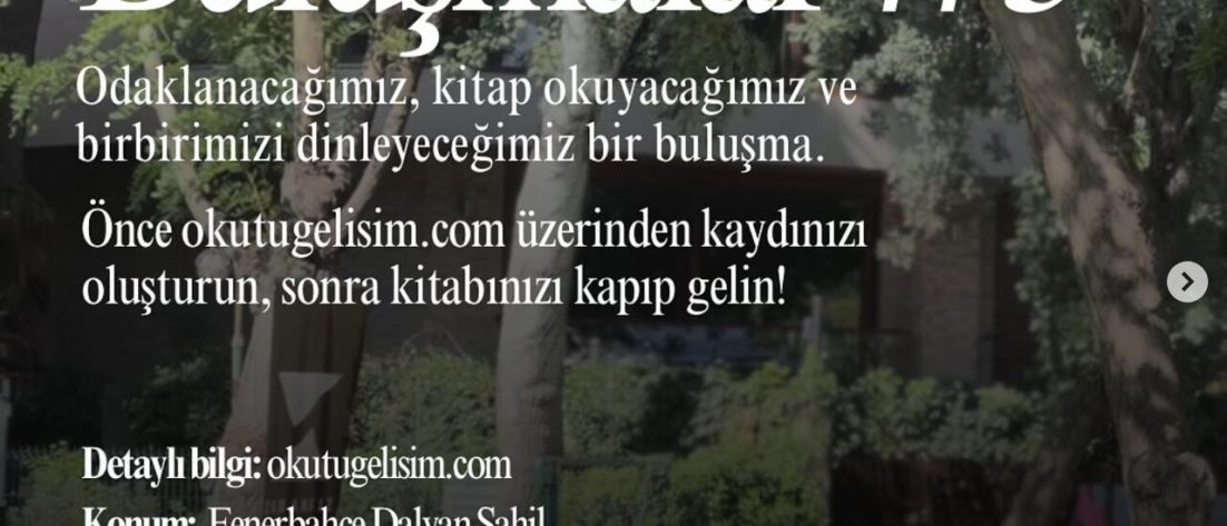 Bana en hoş gelen etkinliklerden biri Kitaplı Buluşmalar. Bir parkta buluşup herkes getirdiği kitabını okuyor, bir saatin sonunda dileyenler paylaşım yapıyor.
