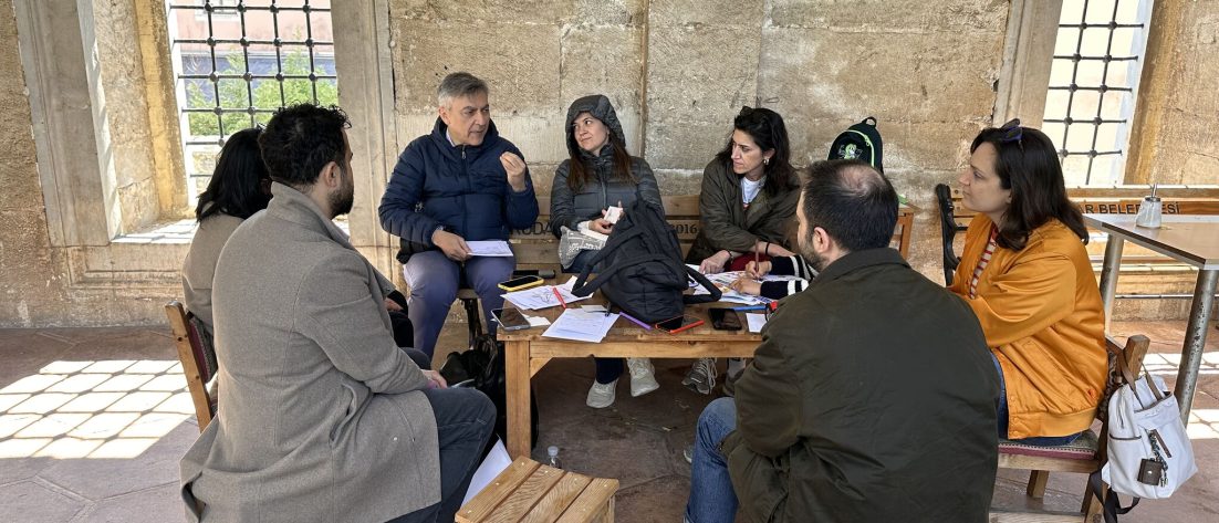 Selin Taşdelen Kaya ve Doğukan Şayan tandem olarak bize Üsküdar’da Valide-i Atik mahallesinde bir güzergah hazırlamışlar. Elimizde bir kroki sokaklarda yürüdük, sadece etrafımızın farkına vararak, bir yere yetişmeden yürüdük. Sonra bir noktada üzerinde düşünmemizi istedikleri soruların olduğu zarfları aldık, daha doğrusu çektik. Ben bu geziyi Sanatçı Buluşması’na çevirip, fotoğraflar da çektim (Sanatçının Yolu’nu okuyanlar bilir). Sonra Valide-i Atik camiinin avlusunda oturduk gözlemlerimizi konuştuk. Cami ve külliyesi Mimar Sinan’ın inşa ettiği tam teşekküllü ve tek parça kalabilmiş son külliye olarak kabul ediliyormuş. Burası mahallelinin bir yaşam alanı adeta çocuklar koşuşturuyor, büyükler taburelerde oturup çay, kahvelerini içiyorlar asırlık bu mekanda.